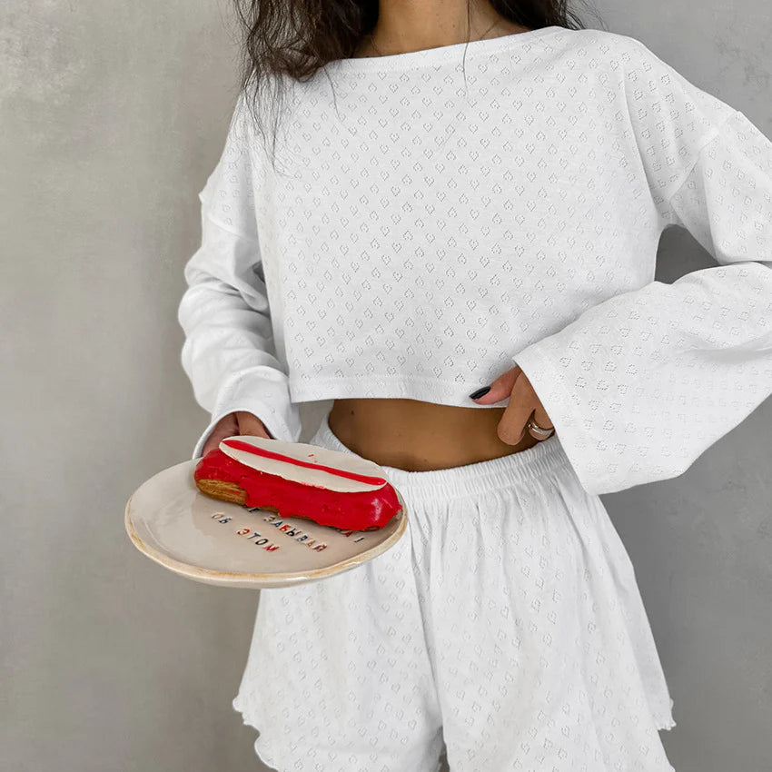Soft & Stretchy Knit Long Sleeve Top & Shorts Set